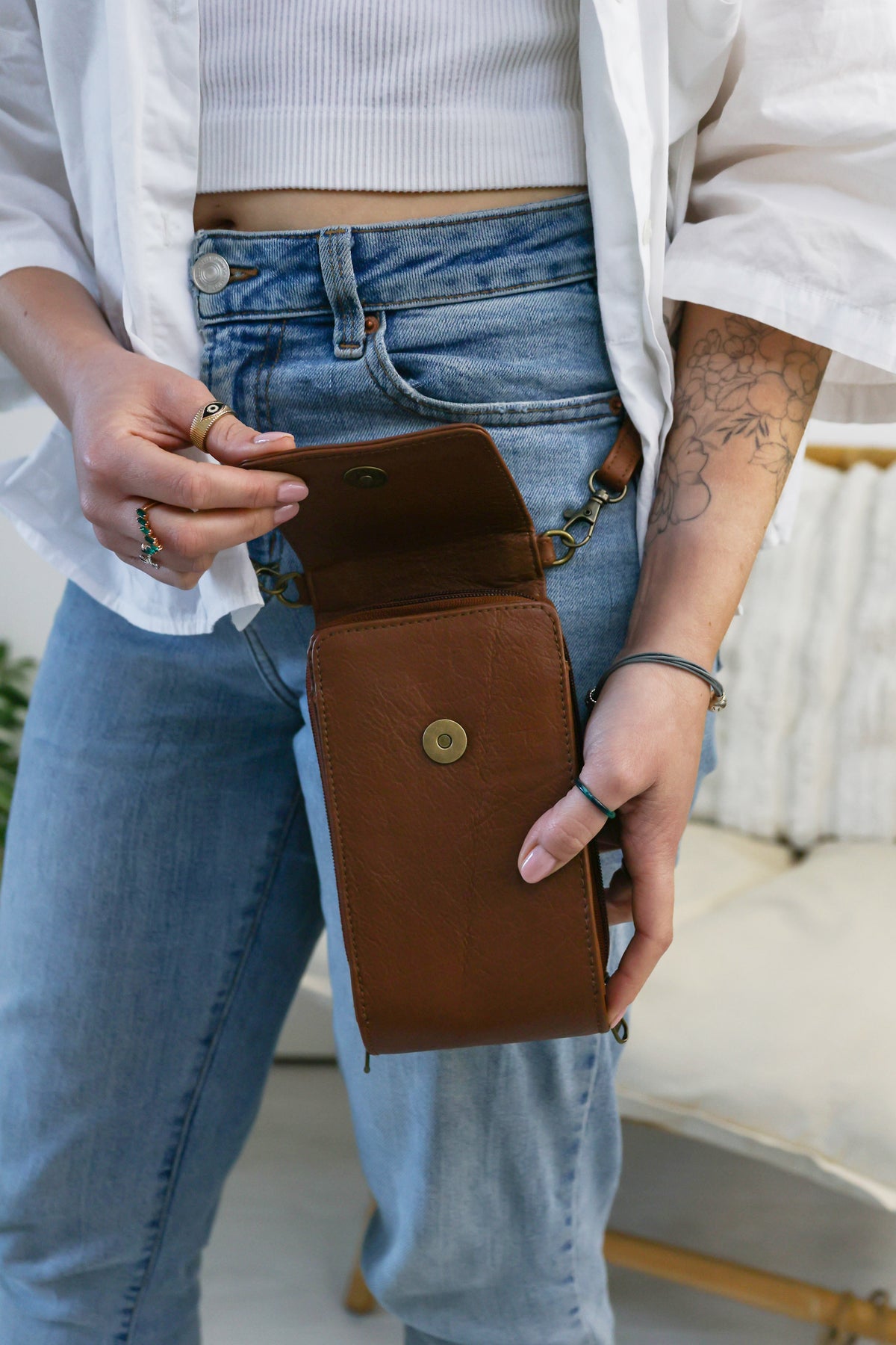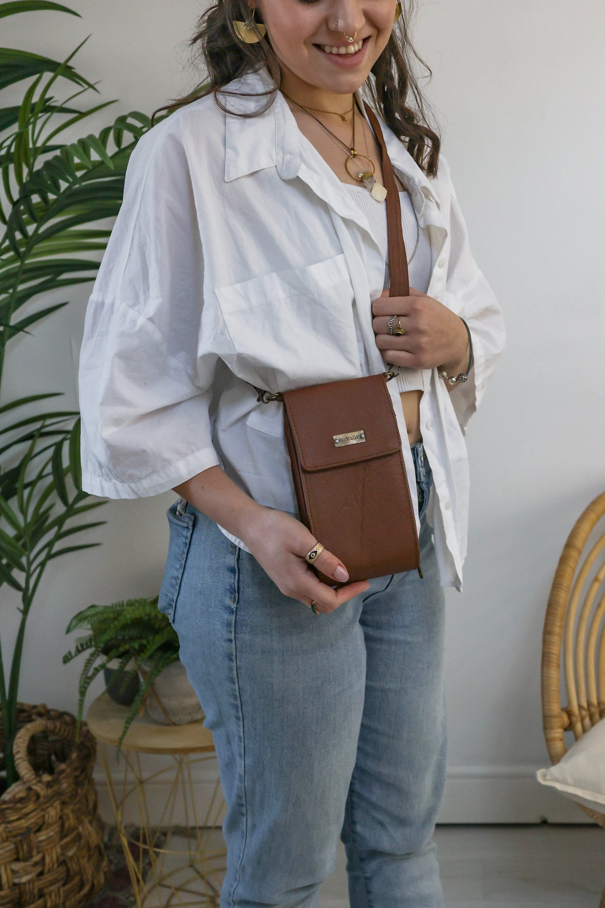Cleo was designed for everyday life — for the moments when you want to keep your phone close without carrying a full bag. It’s a petite, long rectangular leather phone bag that does exactly what it needs to do, without unnecessary detail.