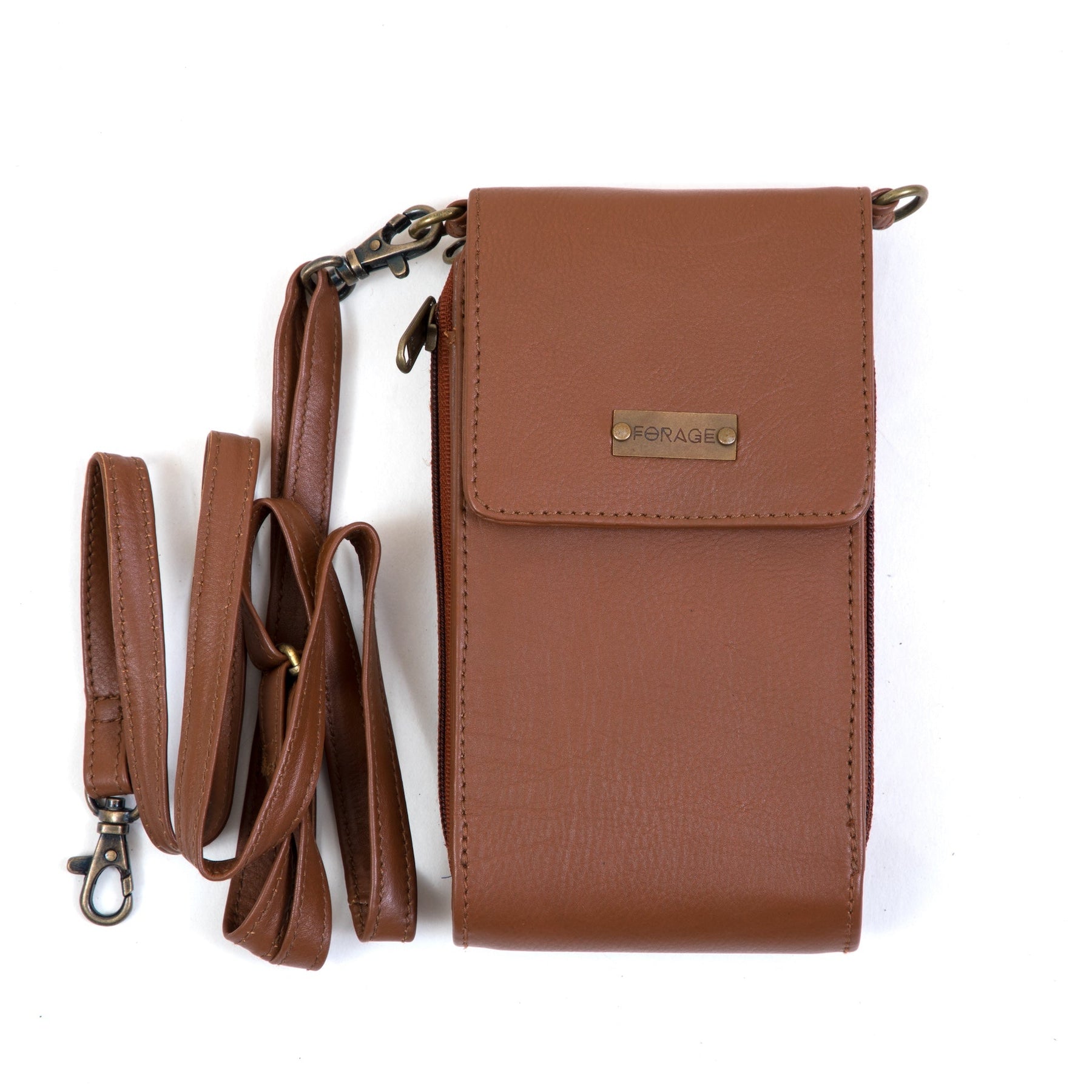 Clean in shape and considered in detail, Cleo comfortably holds a smartphone along with a few small essentials like cards and loose change. The zip opening expands at the top, making it easy to access your phone while keeping everything secure when worn.