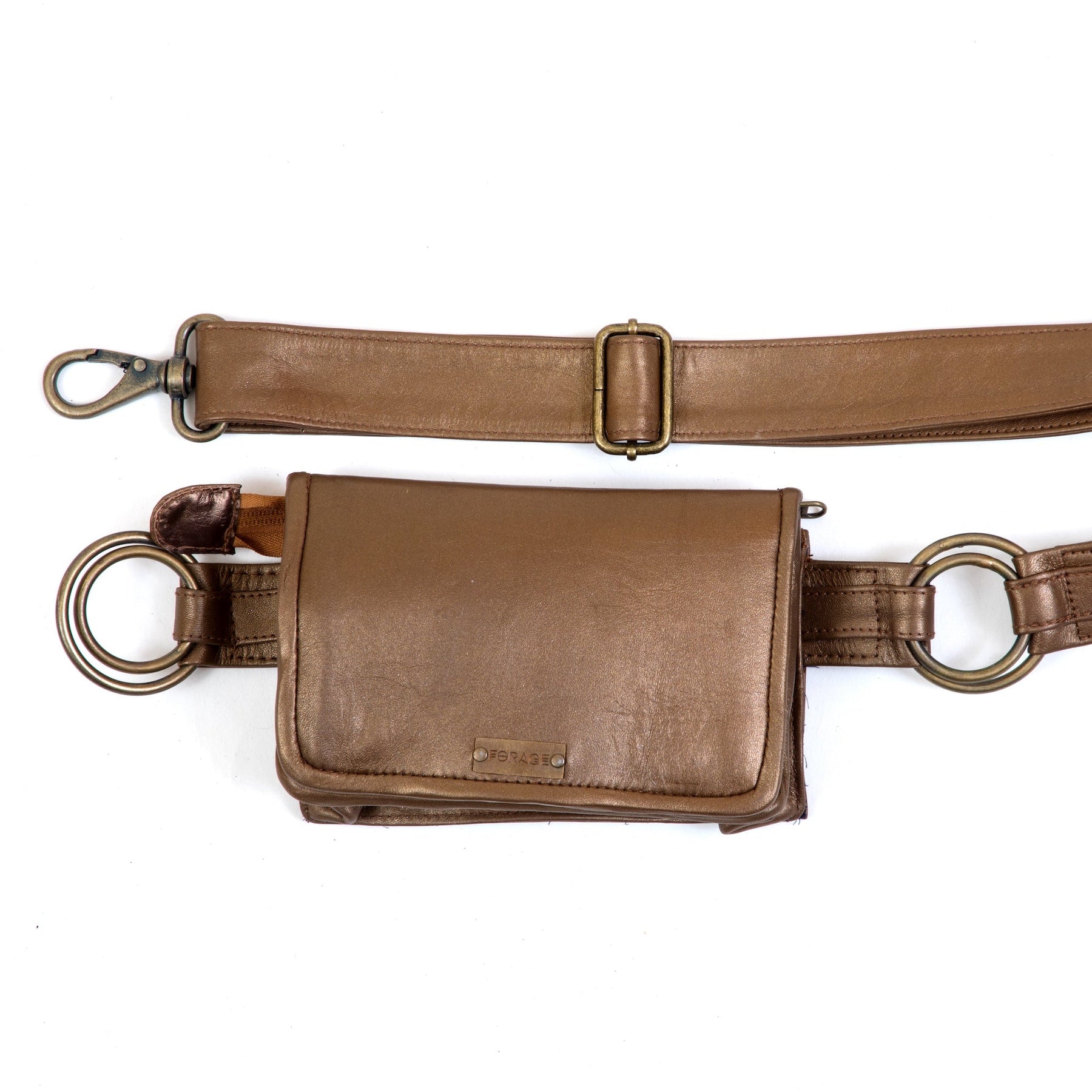 Built from quality leather and finished with solid brass hardware, Atla is made to be worn crossbody, at the hip, or secured comfortably around the waist using our signature clip and ring fastening. A riveted brass Forage tab sits at the front - understated and built to last.