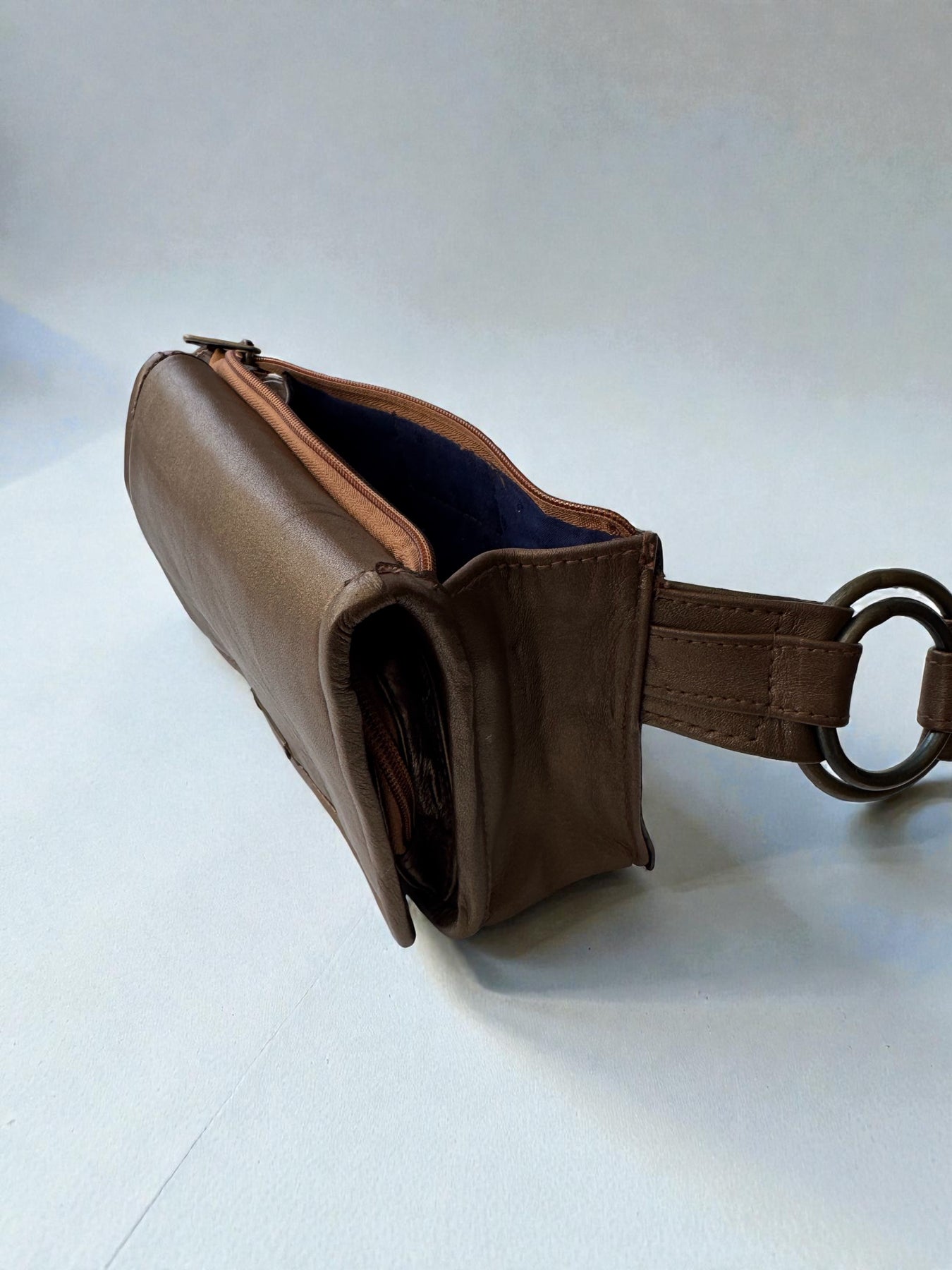 The Atla Belt is a structured leather belt bag designed for travel days and everyday movement.