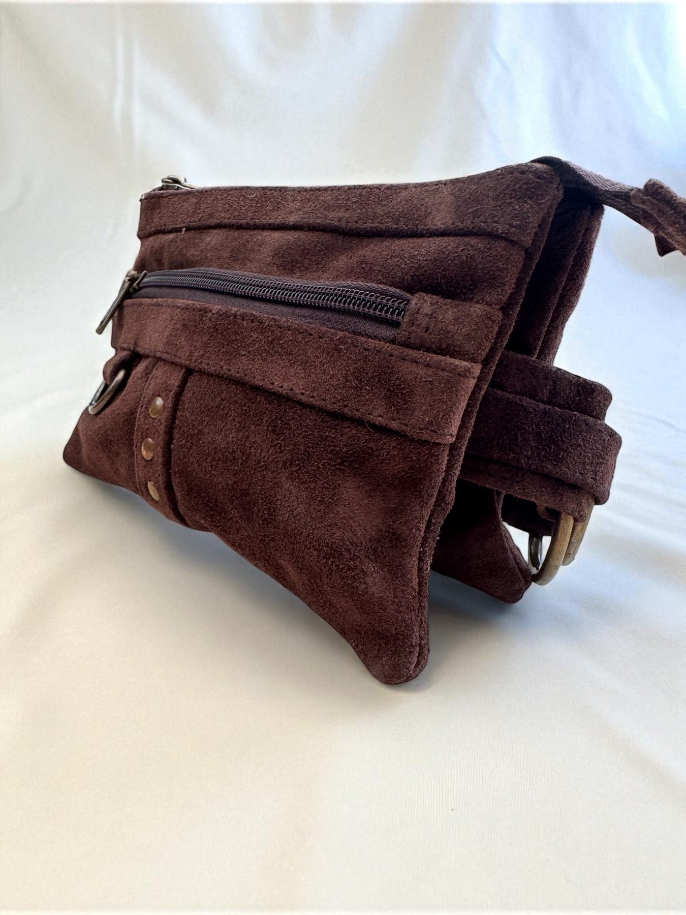 When we first started making belt bags, we used a traditional buckle and eyelet fastening. But over time, we found that the belt strap material would stretch, the holes would widen, and the metal eyelets would sometimes pop out - making repairs fiddly and often requiring a specialist.