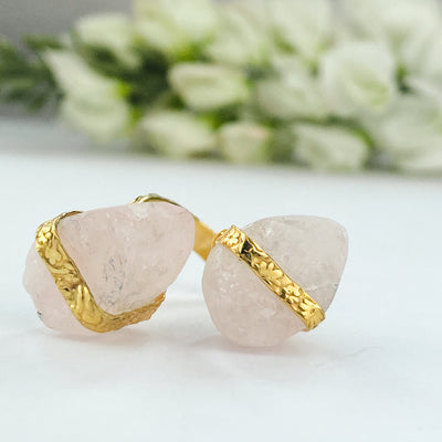 The collection uses raw, irregular crystals finished in 18k gold. These stones are rough cut, beautiful and naturally formed. There are discolourations, blemishes and irregularities in the stones themselves that make them unique.
